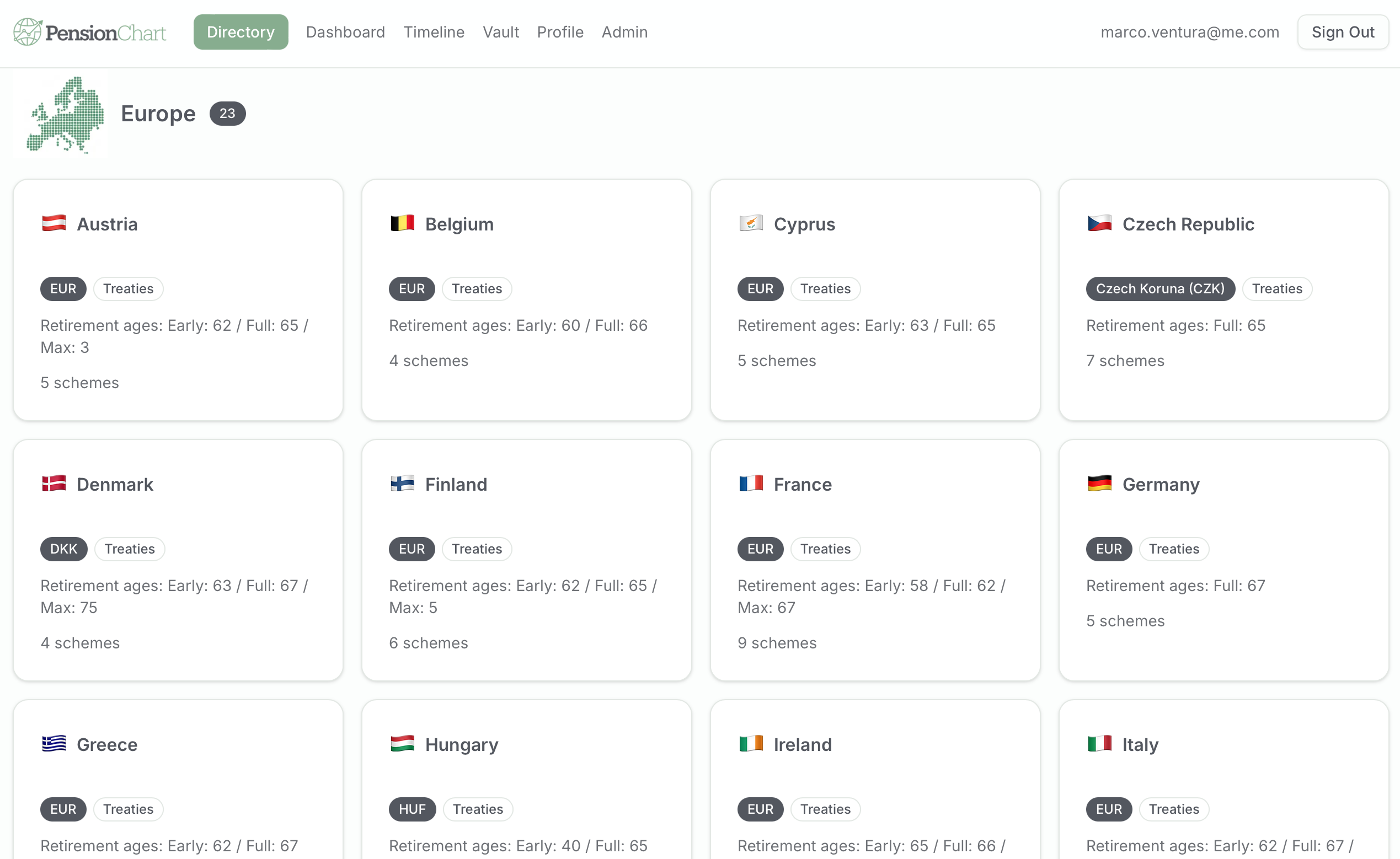 The practical challenge is knowing when each pension age arrives for each country. Keeping a clear record of your retirement dates across countries is the kind of thing PensionChart tracks for you.